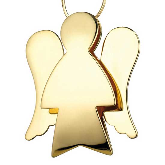 This is an elegant pendant finely crafted of gold. It is inspired from the golden "Angeli" book telling the story of the 72 guardian angels. Fully branded with a beautiful sales concept, this stylish pendant allows you to take the "Angel" story home and share it with friends and loved ones.