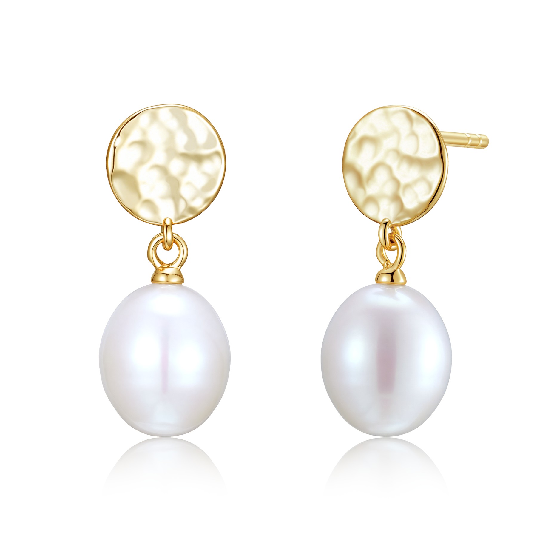 STERLING SILVER EARRINGS WITH 8.5-9MM DROP SHAPE FRESHWATER PEARL, YELLOW GOLD PLATED