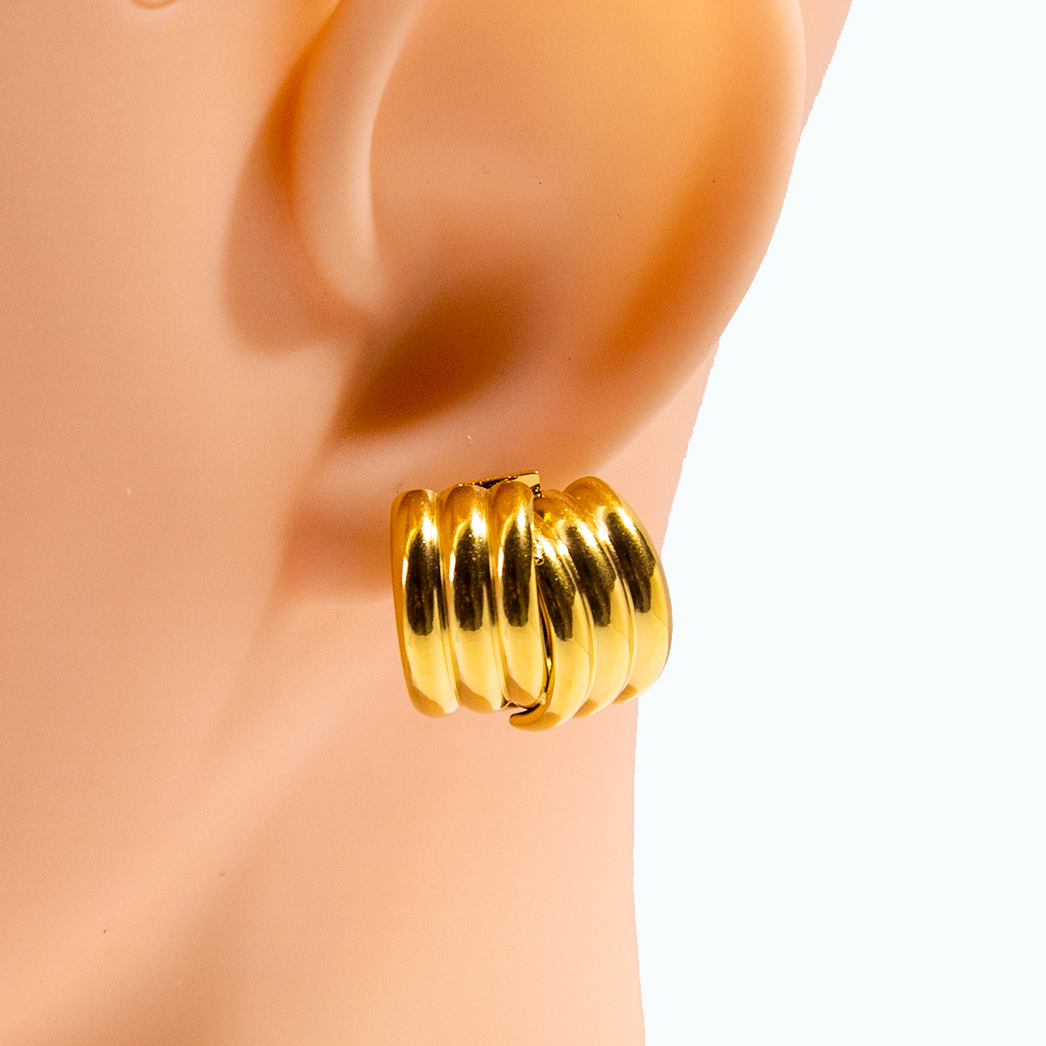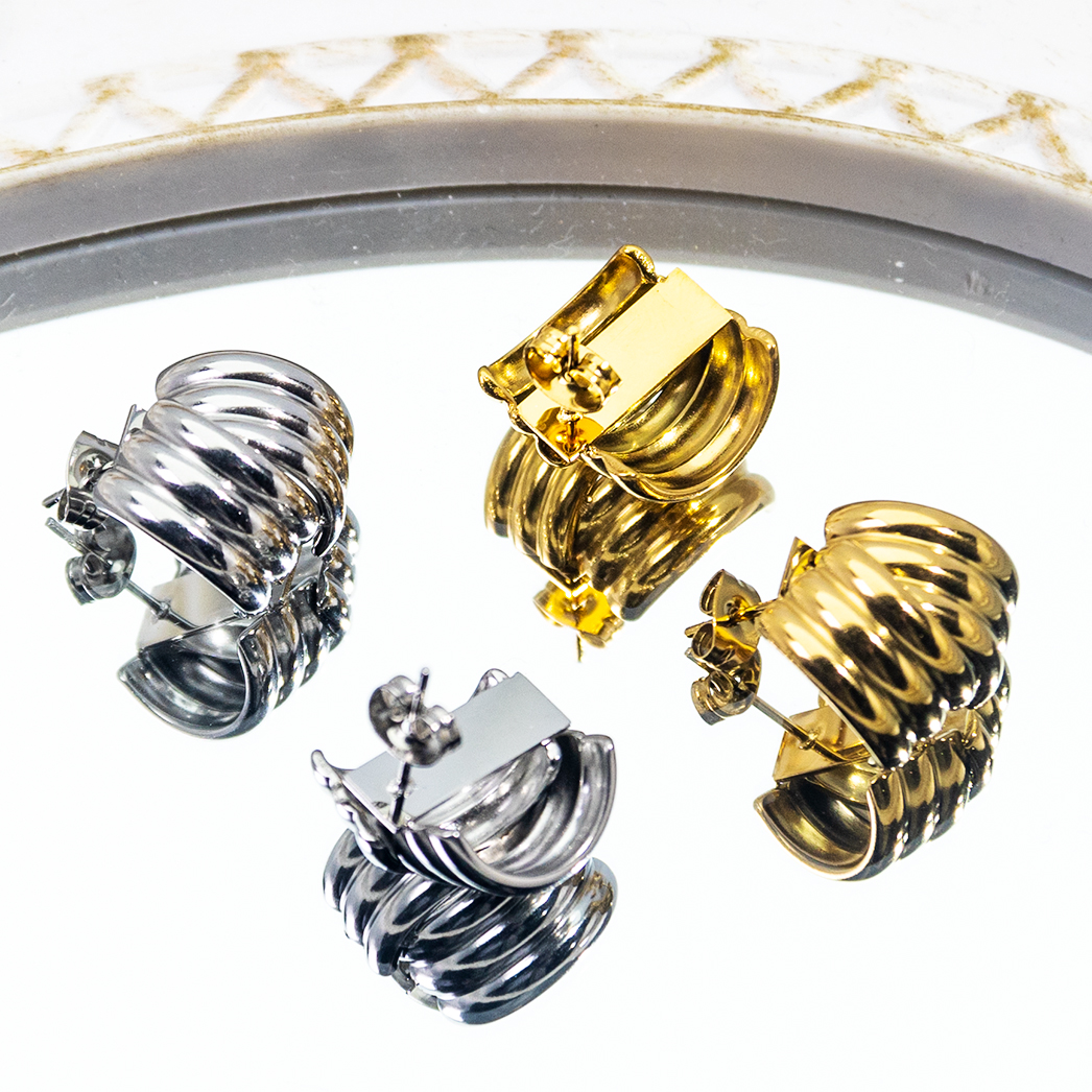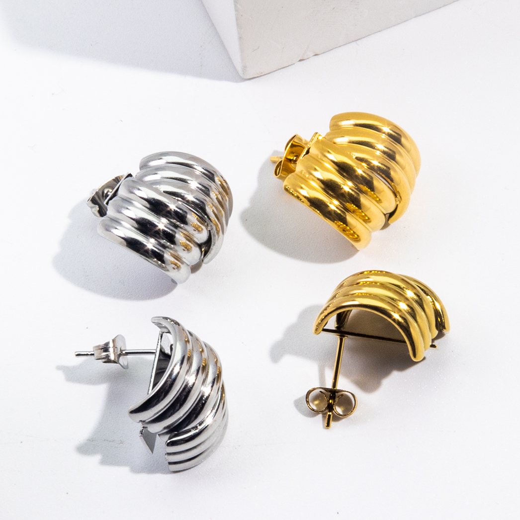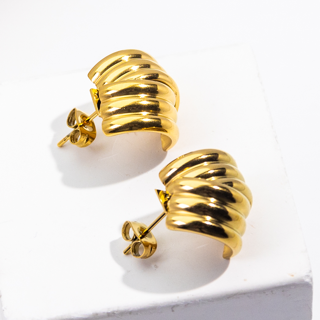 Non Tarnish Gold Plated Jewelry Texture Exquisite Patterned Earring Stainless Steel Big Geometric Earring