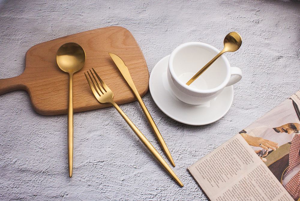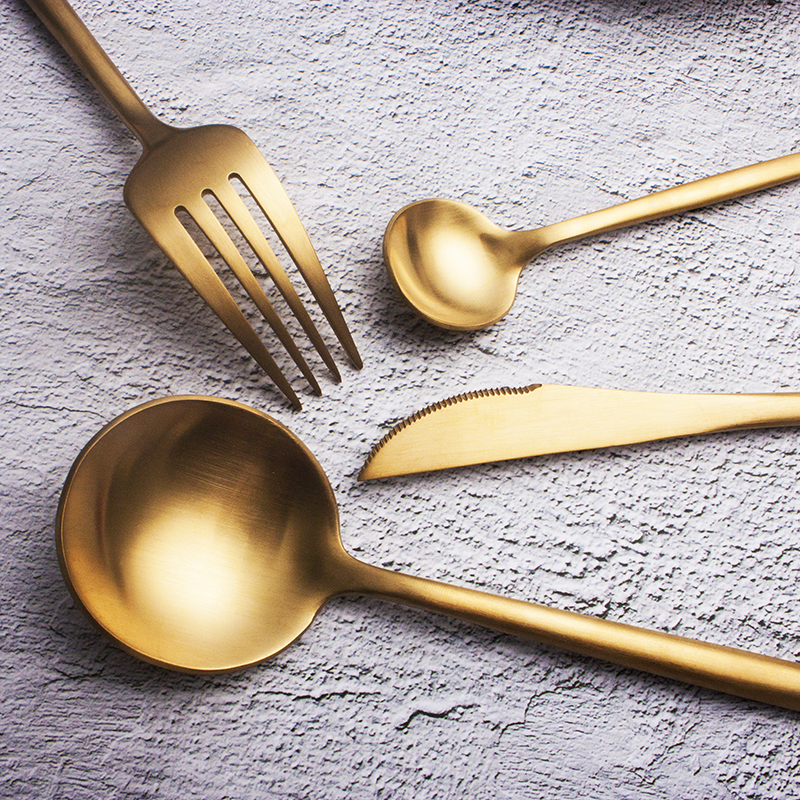 18 10 Portuguesa gold plated Matt wedding silverware sets