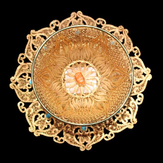 This hand craft is made of quality silver with gold plating. It is meticulously crafted in a flower shape with detailed and sophisticated patterns. Showcase your good taste and add an artistic touch to your home décor with this charming craft.