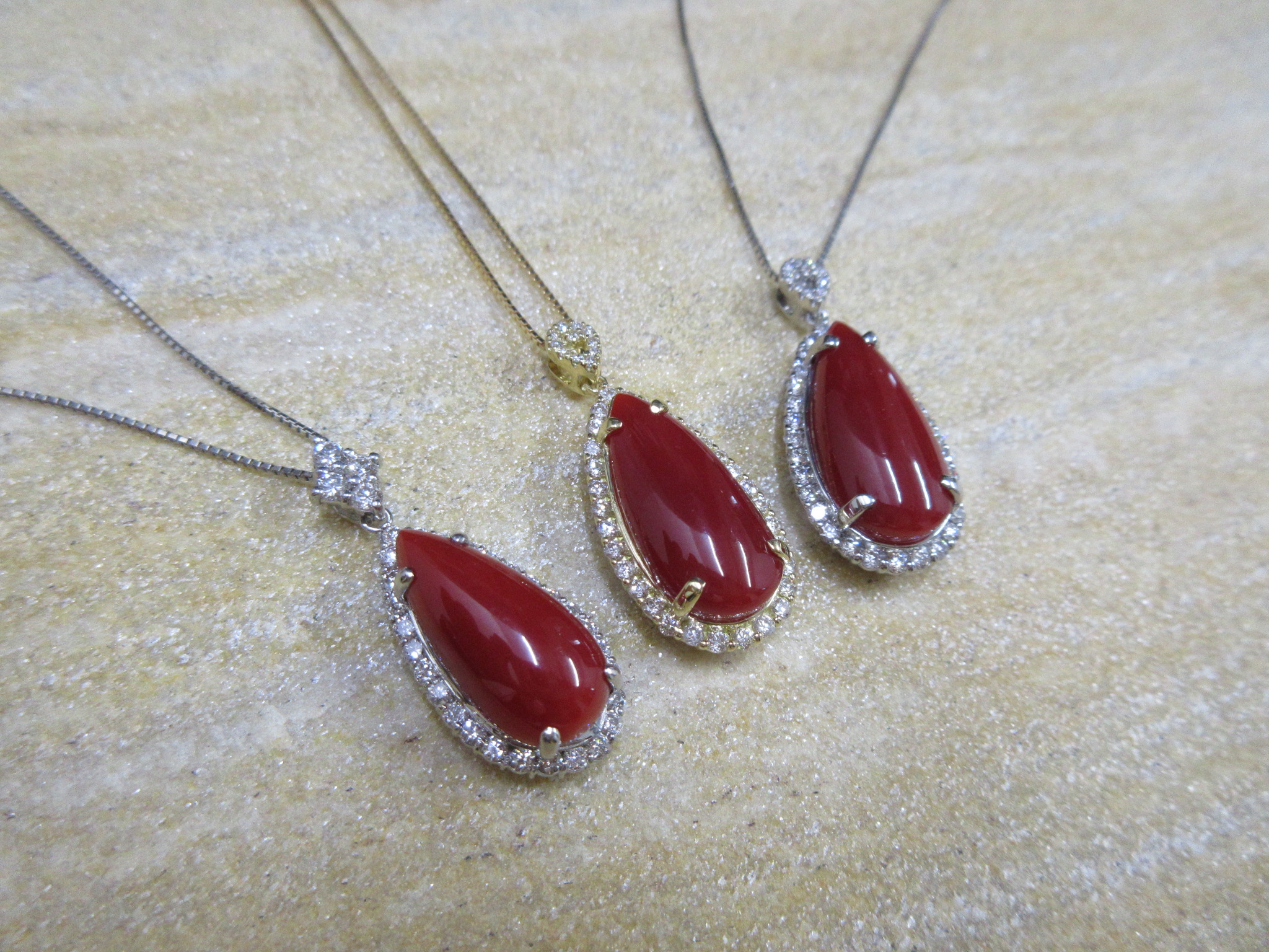 We purchase ox blood red coral from reliable partner in TOSA bay, Kochi prefecture where is famous for good quality of the coral. and Craftsman in Kofu, Yamanashi Prefecture, which is famous for ‘jewelry town’ makes jewelry so carefully.