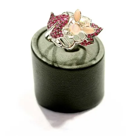 The gold ring is accentuated by its specially shaped ornament on the top. It is dressed with well-selected rubies for enhanced glamor. Simply pair this piece with other grand-style jewelry for your coming evening parties.