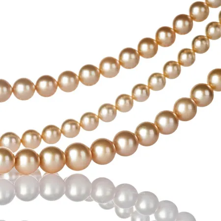 Featured is a strand of gold south sea pearls in highly polished finish. Those gorgeous pearls come in a perfectly round shape with high luster and brilliance. The pearls are greatly suitable to make luxuriant jewelry products.