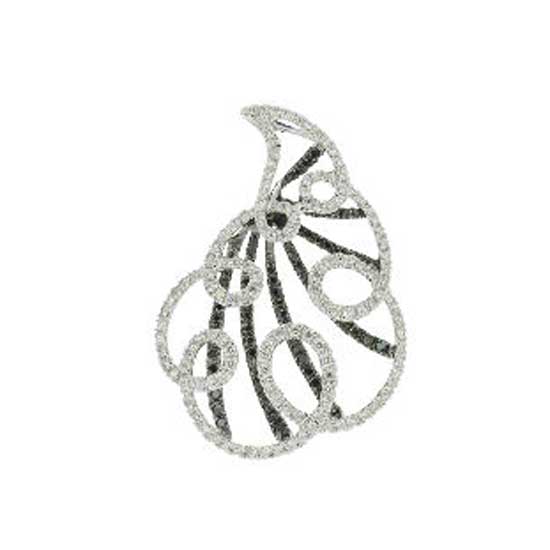 This stunning pendent stands out from the rest with its artistic and unique design. It features a twisted yet streamlined structure which is made of 18K white gold. The piece is finely paved with shimmering white and black diamonds all over.