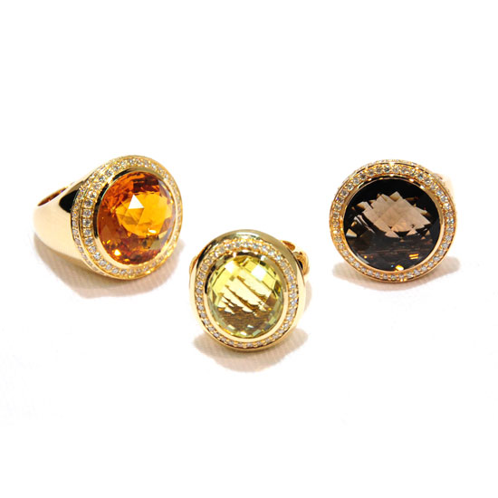 This beautiful ring features an alluring lemon, red or smoky quartz stone encircled by tiny white diamonds. Crafted of fine gold, the ring showcases a highly polished finish. Add a touch of elegance to your ensemble with this gorgeous ring.