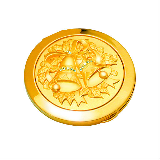 • Shiny Gold Plated with blue crystals & 2 Bells & X'mas leaves in the background in Matt Gold Plated