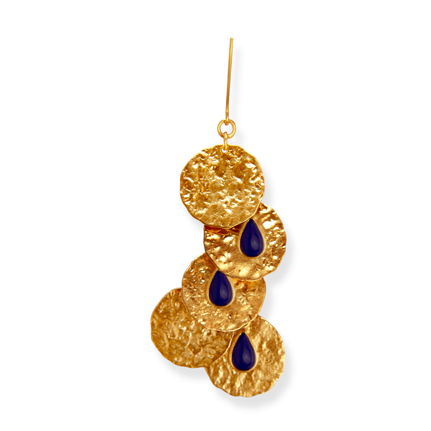 • More than 500 years ago, the coins system was introduced in the Peruvian society to carry out trading between people and to show social status of the people who possessed. Inspired by those first gold coins,we are bringing to you the elegant colours and unique textures, adorned by beautiful lapis-lazuli. Outstanding jewellery that will make you feel unique.