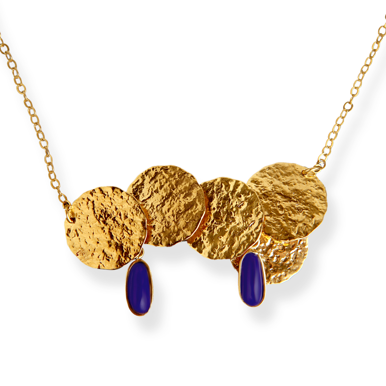 Inspired by those first gold coins, we are bringing to you the elegant colors and unique textures, adorned by beautiful lapis-lazuli. Outstanding jewelry that will make you feel unique.