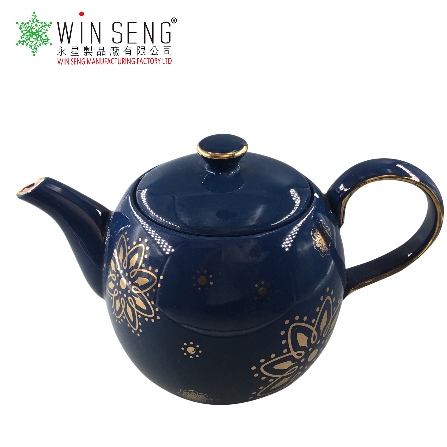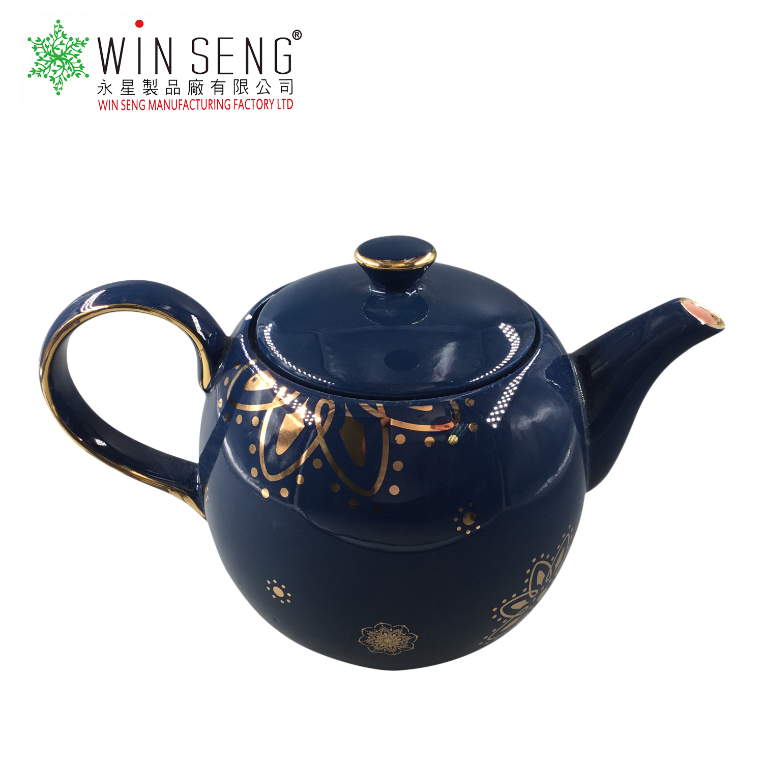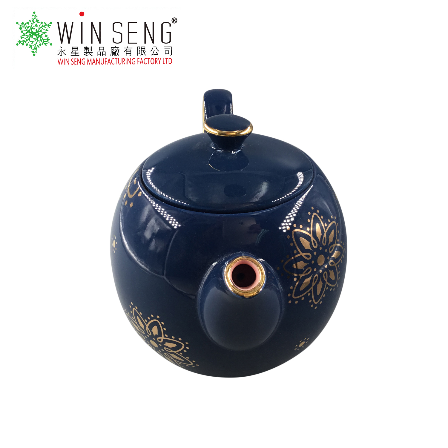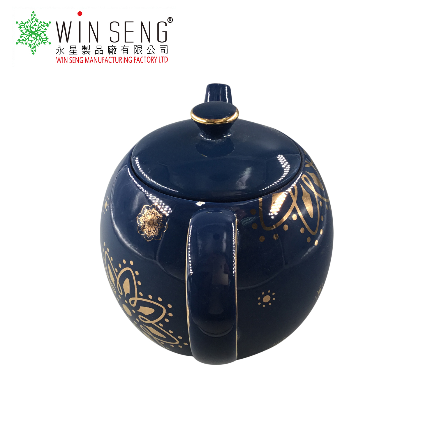 • ​Item Name: Golden flower printing blue ceramic teapot