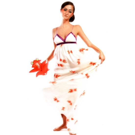 • This elegant dress comes with unique hand painted gold fish patterns.