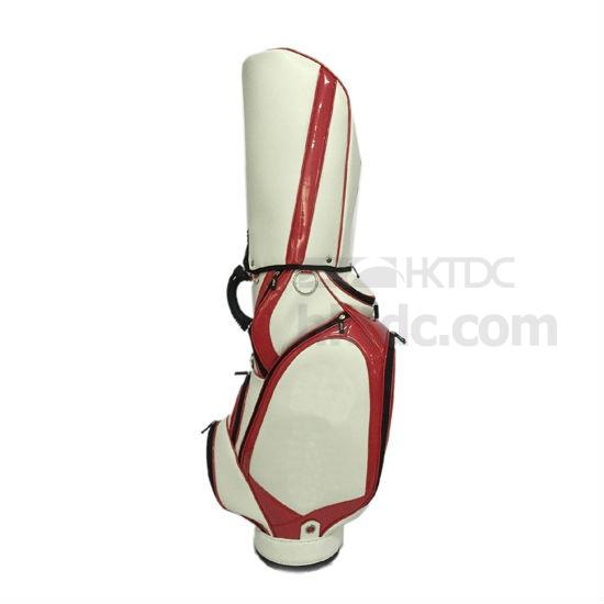 Store and carry your golf equipment with ease by using this PU golf bag. It has a large main compartment for golf clubs and has zippered pockets for other accessories. This PU golf bag can show logos on the exterior and has a handle for comfortable carrying.