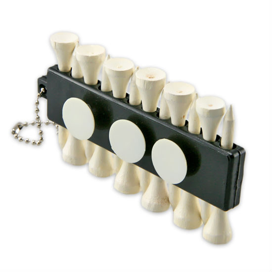 This golf tee holder set is a must for any golfing lover. Comes with 12 hardwood tees and 3 plastic ball markers, each piece is simply durable and can be smoothly cleaned. The small key chain can be easily attached to your golf bag for quick access and convenience.
