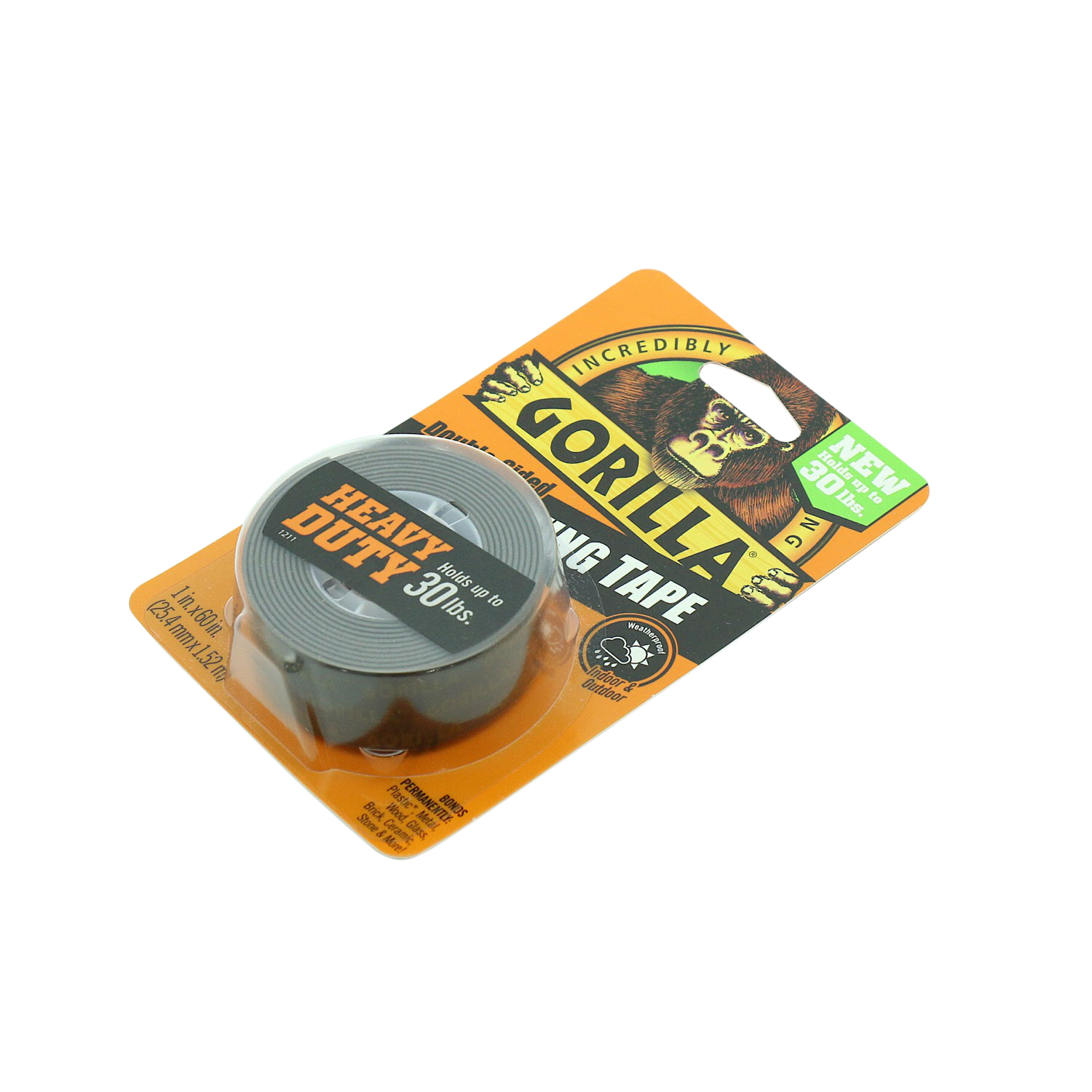 Gorilla Heavy Duty Mounting Tape and Tough & Clear Mounting Tape are super tough and mount in an instant, holding tight up to 30 lbs for Heavy Duty Mounting Tape while Tough & CLear Mounting Tape provides crystal clear, weatherproof bond.