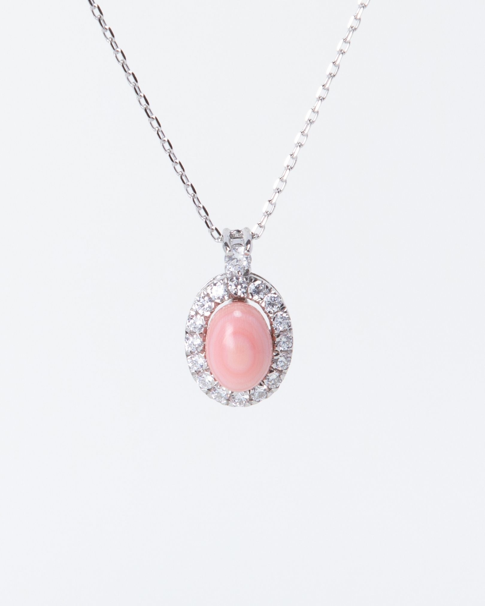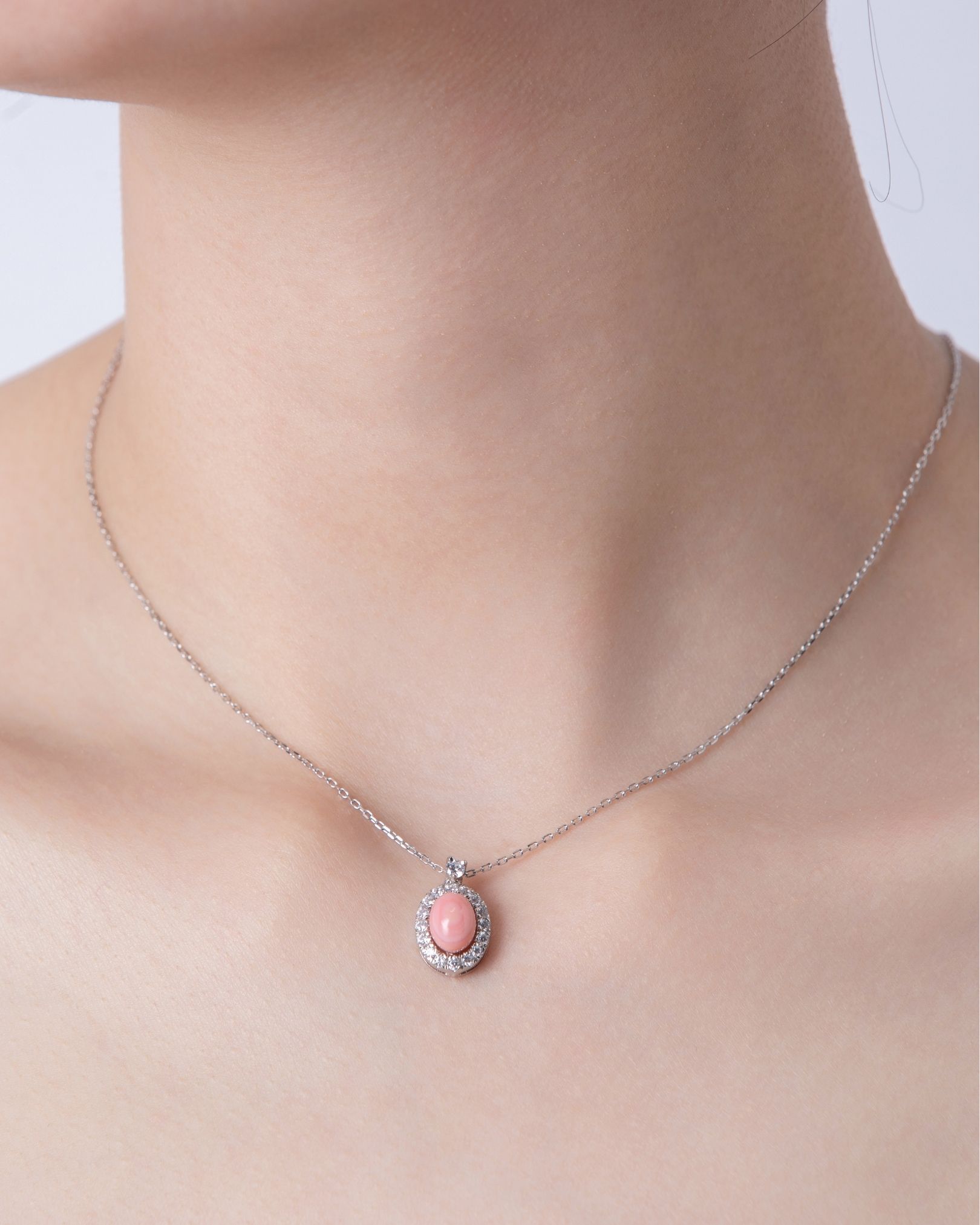 High Quality Pink Queen Conch Shell with Cubic Zirconia, Sterling Silver 925 Pendant.
