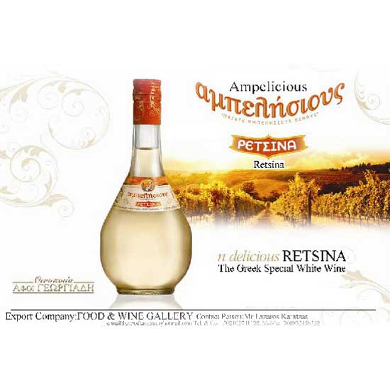 The Retsina is a delicious Greek white wine that enjoys a long history. It features a slightly golden, pale color. This beautiful wine has a typical flavor of pine and is a great accompaniment to a Greek meal.