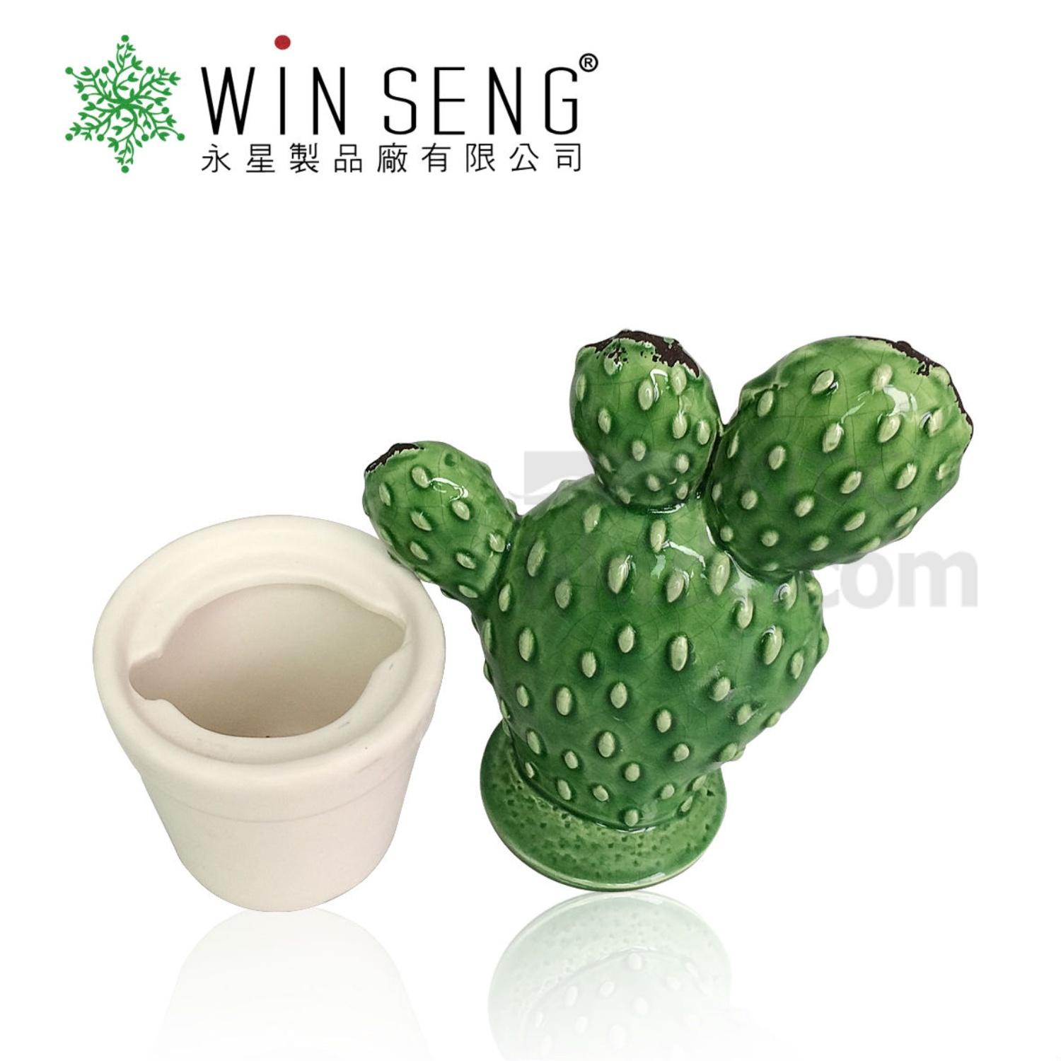 • Product Name: vintage home decor,green ceramic cactus with white pot