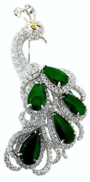 • Pear shape green jades, totally five pieces; white diamonds, carat total weight 1.90ct.