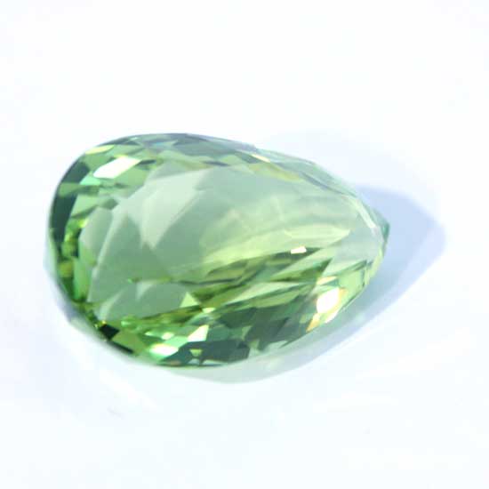 This tourmaline shows a fresh spring feeling with its light green color. The stone is cut into a brilliant pear shape with highly reflective facets. The sparkle given by this stone is irresistible to every lady who pursues absolute beauty.