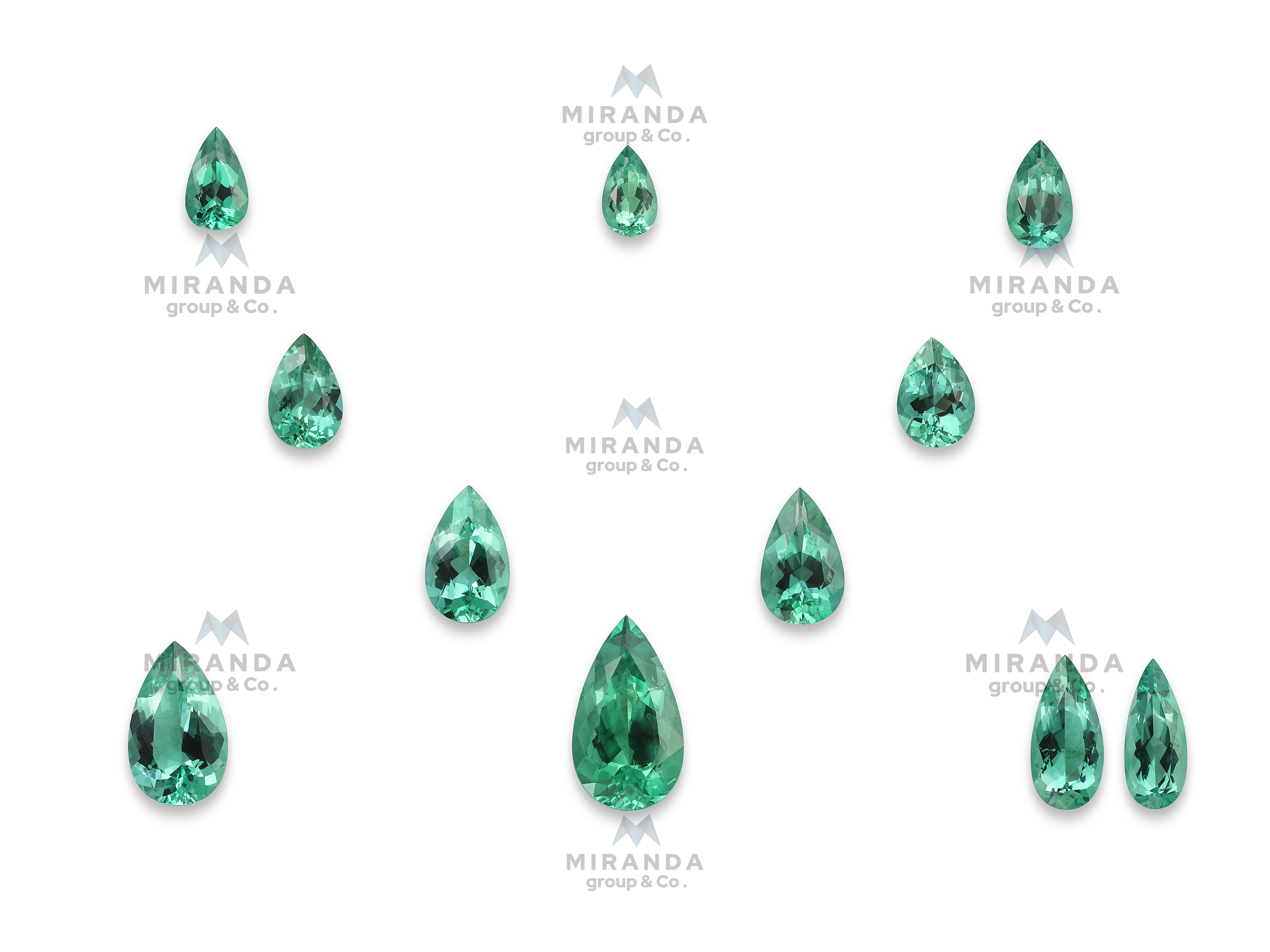 Vibrant Green Gems: 11 pear-cut tourmalines with rich, grassy-green hues—perfect for nature-inspired designs.