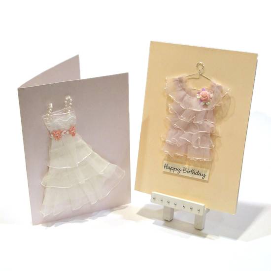 Featured are two high quality paper greeting cards. They feature 3-dimensional pictures of lady dress ornament on the covers. They are ideal for birthday, valentine's day occasions and so on.