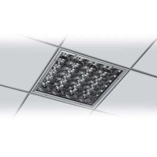 Displayed is a grille light coming in a square shape. It is fitted with 2-4 T5 tubes for bright illumination. It is easy to install onto ceilings.