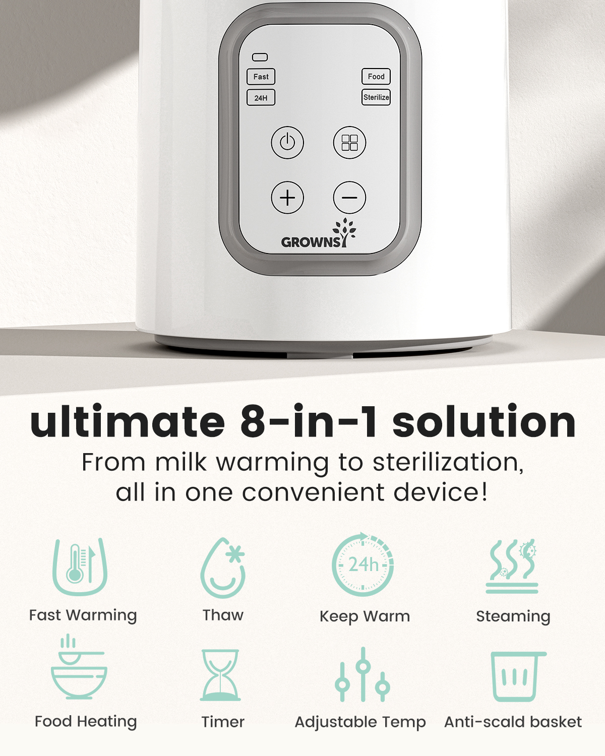 Grownsy 8-in-1 Fast Baby Bottle Warmer with Timer