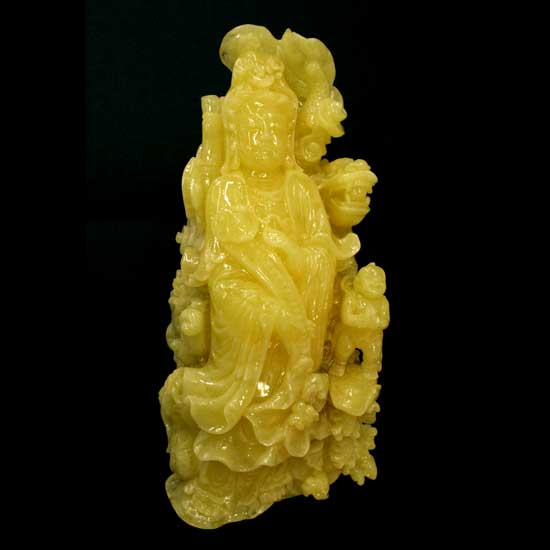 Showcased here is a Guanyin statue which is handcrafted with delicate craftsmanship. The statue is perfect for both decorative and religious purposes. It is suitable to be placed in the living room.