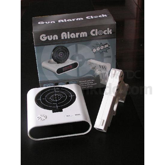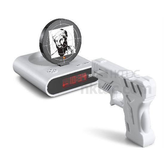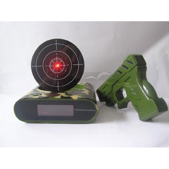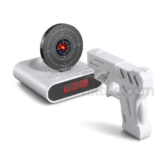 We have a new design of gun alarm clock which you can put the hating person photo on the target.