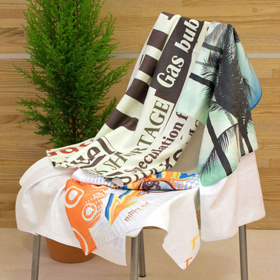 These are microfiber wide gym and sports towels with custom colorful designs by sublimation. They are made of fine microfiber material with a soft texture. You logo or design is sublimated on 1 side for promotional purposes.