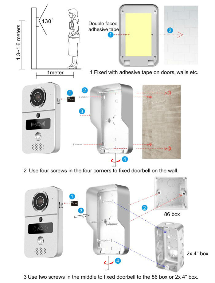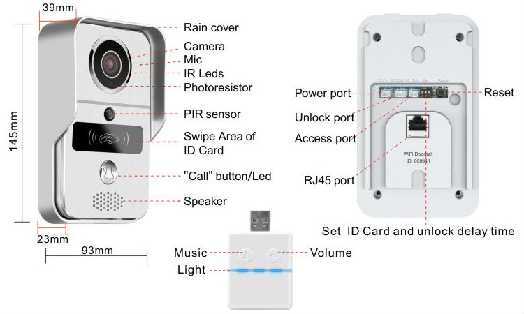 H.264 720P WiFi Video Doorbell Supports RFID Card and Memory Card