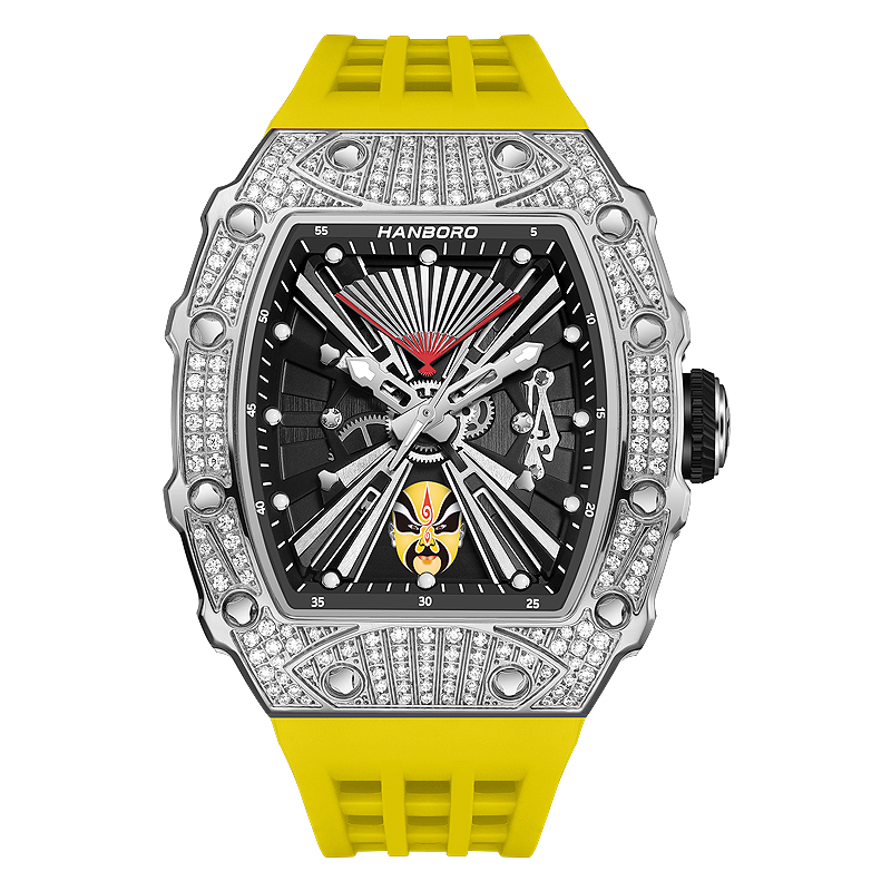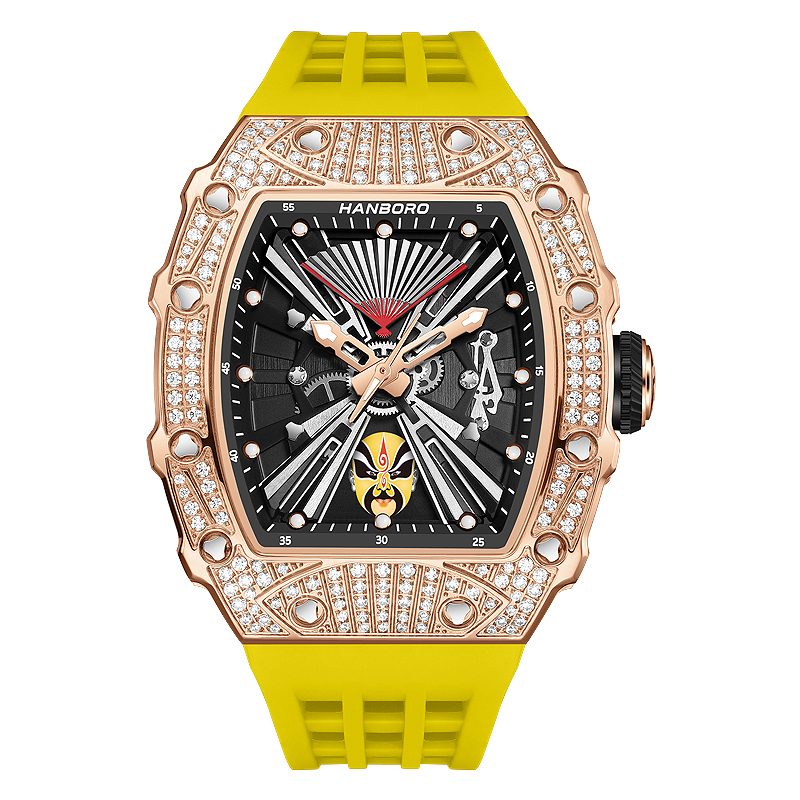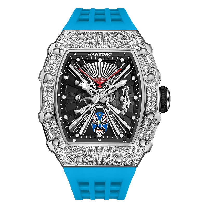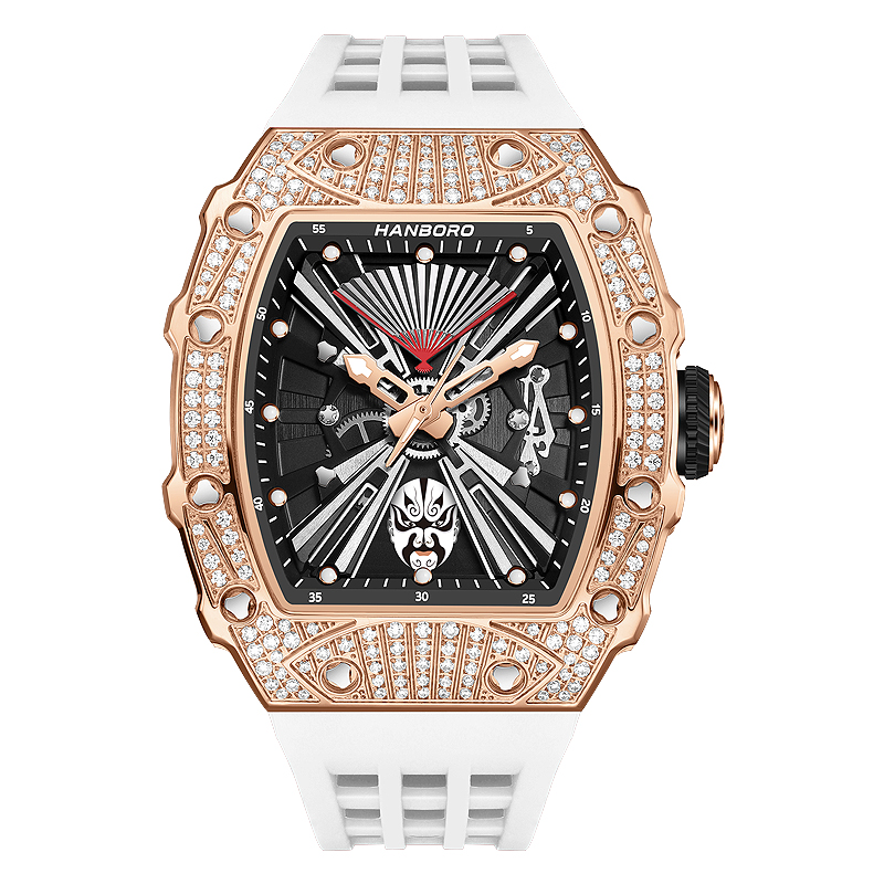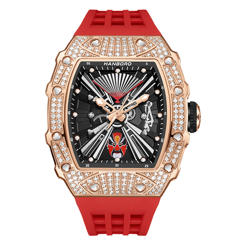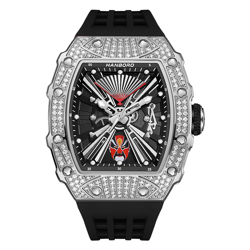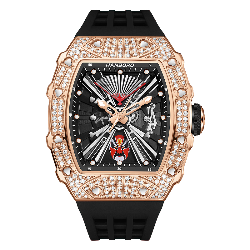HANBORO Facebook series Sichuan opera intangible cultural heritage fully automatic mechanical watch with diamond inlaid waterproof men's watch 927-2