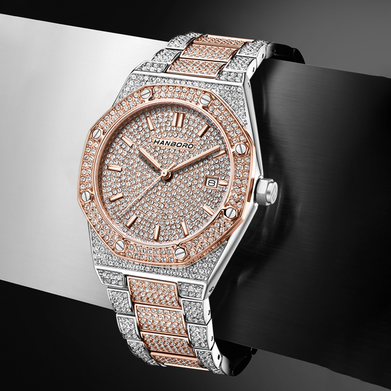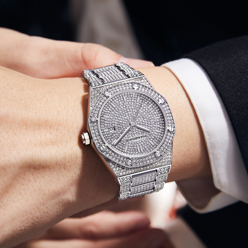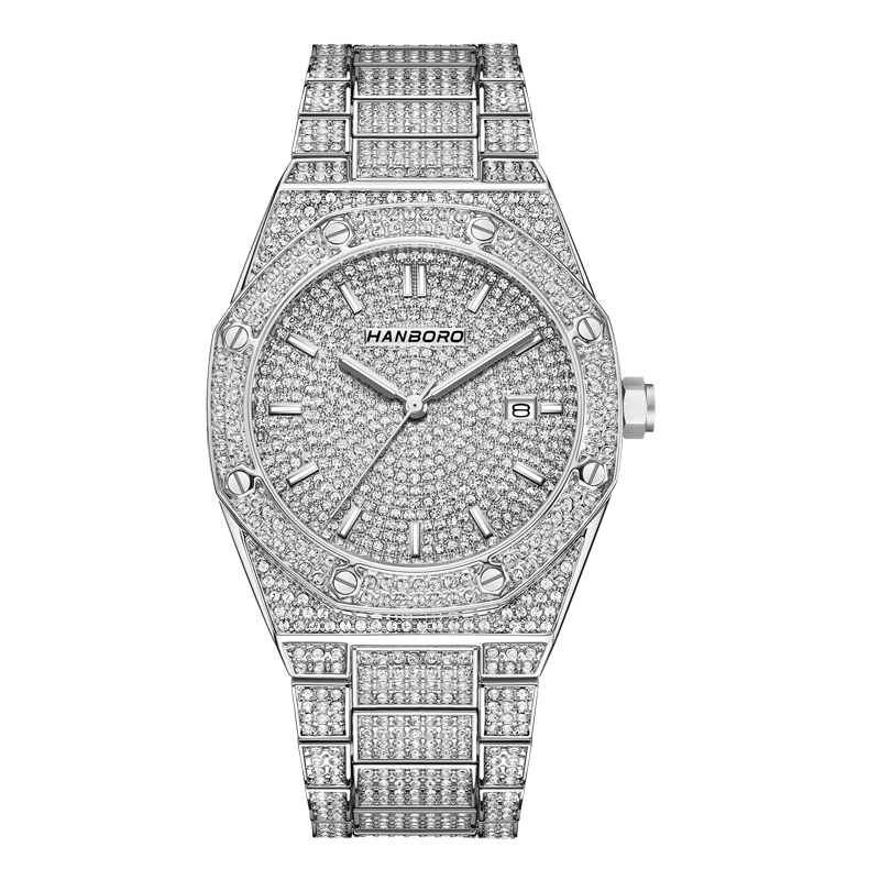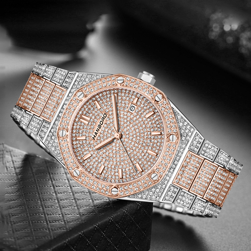 HANBORO Men's Full Star Crystal Diamond Quartz Watch Fashion Trend Watch 384-1