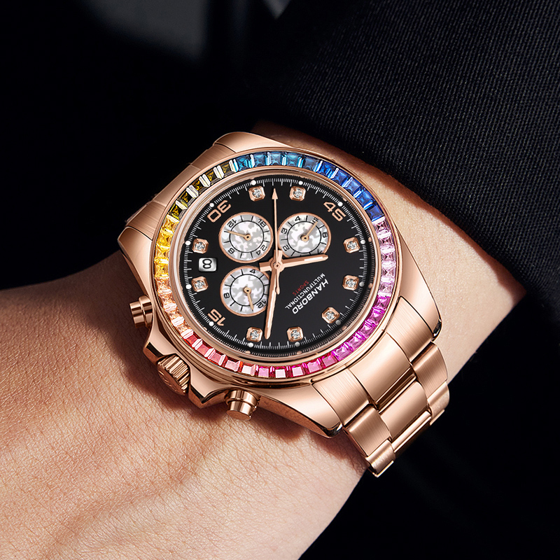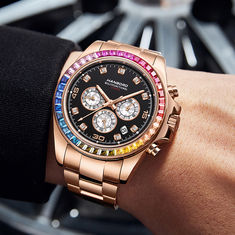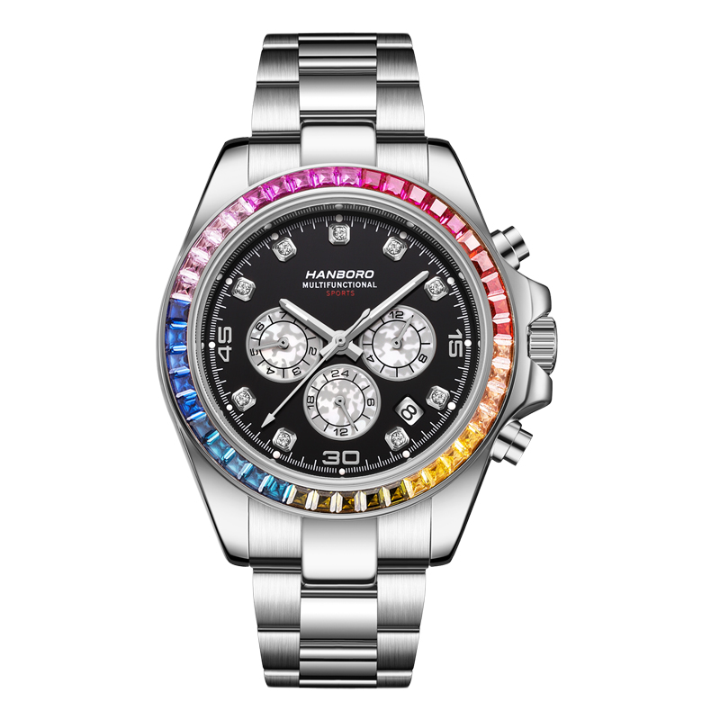 HANBORO Rainbow Dee Multifunction Automatic Mechanical Watch Men's Waterproof Steel Strap Wristwatch 8032L