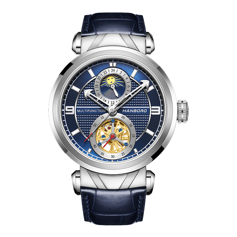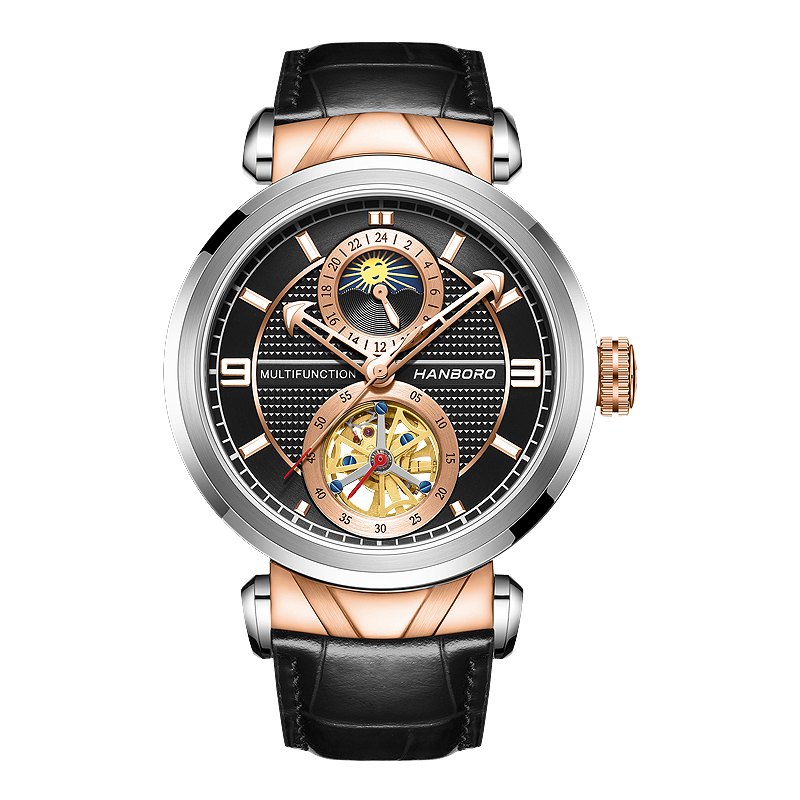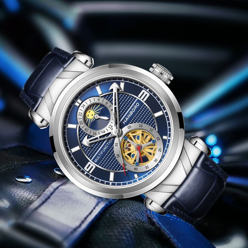 HANBORO Super Master Series Men's Automatic Mechanical Watch Skeleton Flywheel Watch 846