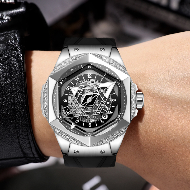 HANBORO Tattoo Series Men's Automatic Mechanical Watch Men Luminous Waterproof Men's Watch 703-2