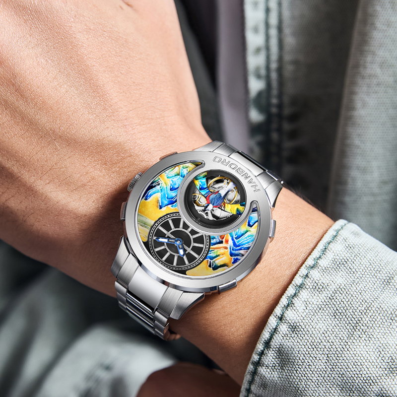 HANBORO Thousand Miles Series Men's Automatic Mechanical Watch Skeleton Magpie Wristwatch 2001-1