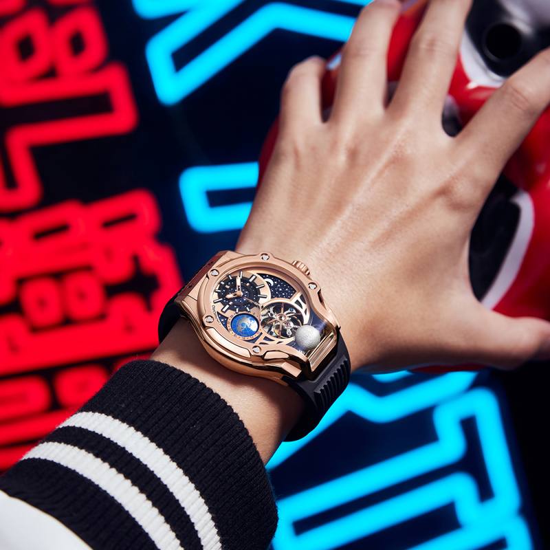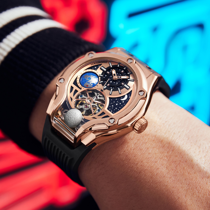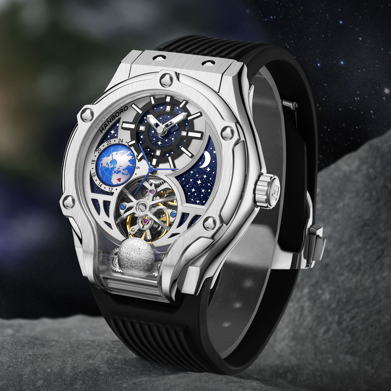 HANBORO Three Body Starry Sky Series Men's Fully Automatic Mechanical Watch Hollow out Watch 980-1