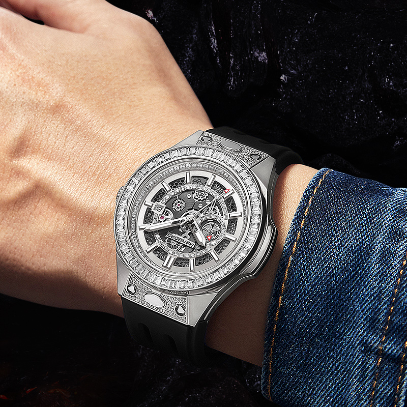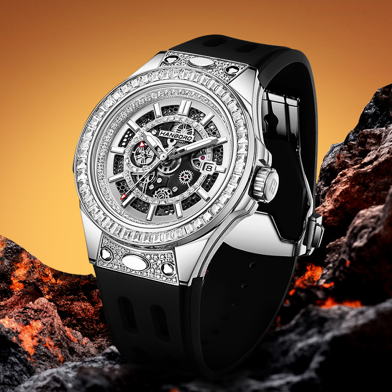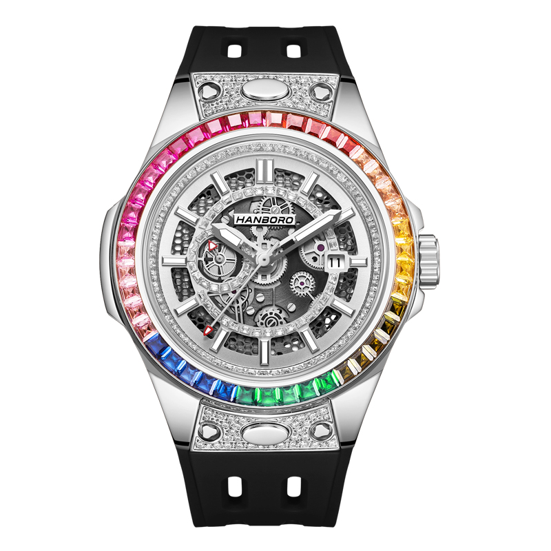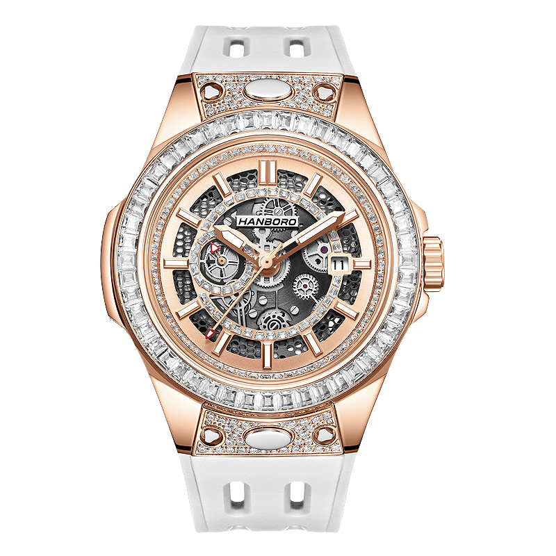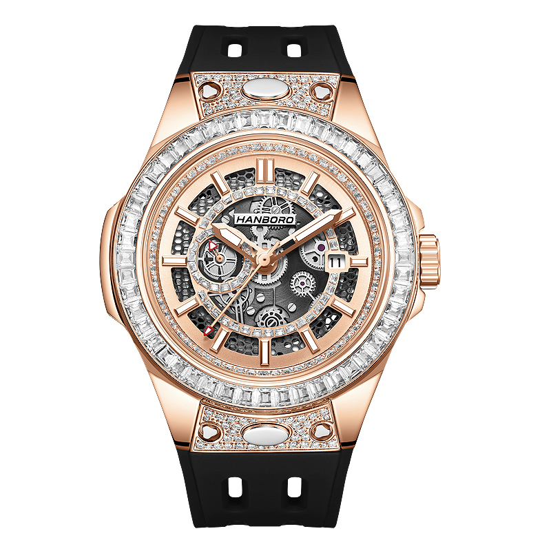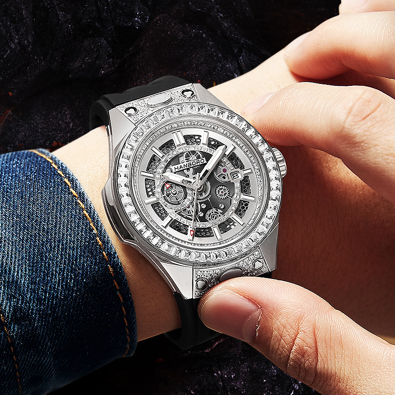HANBORO men's fully automatic mechanical watch with diamond inlay, fashionable night light waterproof watch 842-2