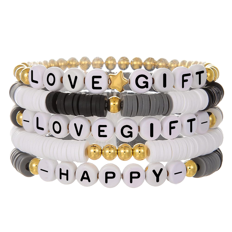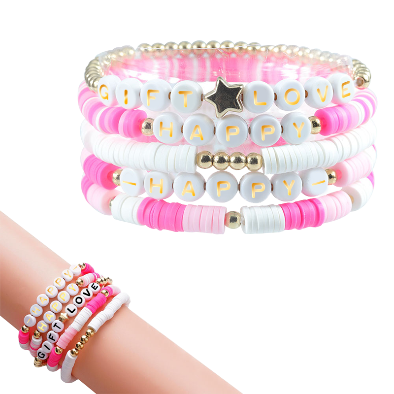 HAPPY GIFT Fashion Sweet Girls Kids Handmade Rainbow Color Seed Bead Bracelet Custom Word Letter Friendship Bracelets