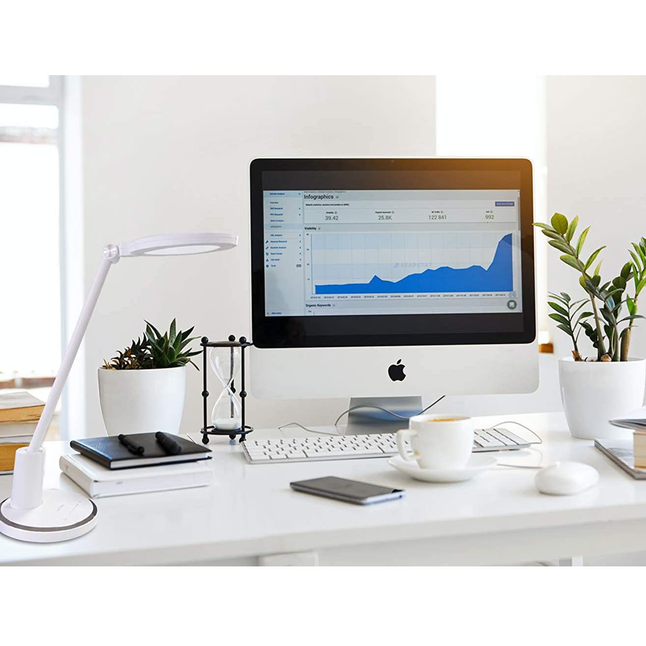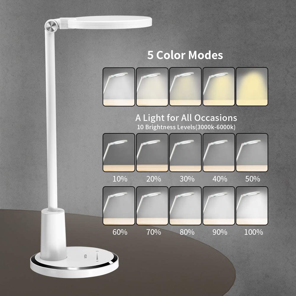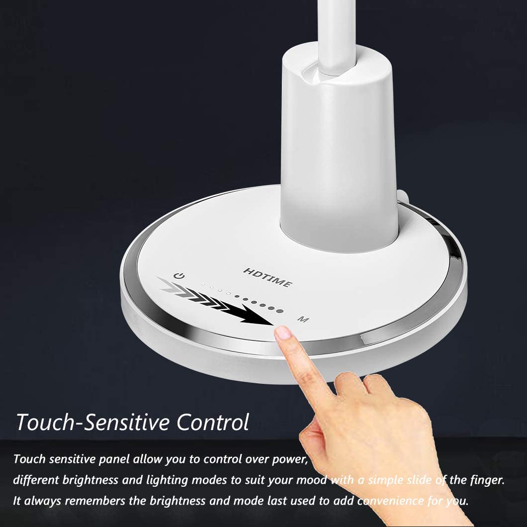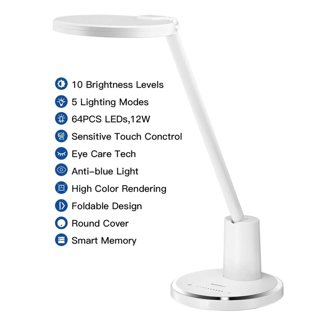 MODEL H1906C, Eye-Care LED Desk Lamp Stepless Dimming 10 Brightness Levels and 5 Color Temperatures Table Lamp for Study Office Bedroom(White,64PCS LEDs)