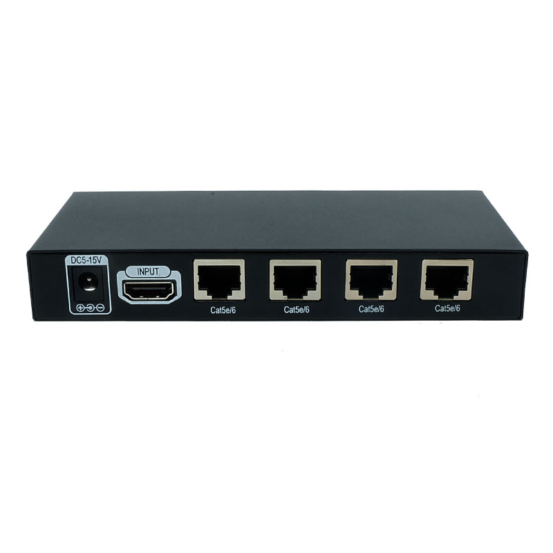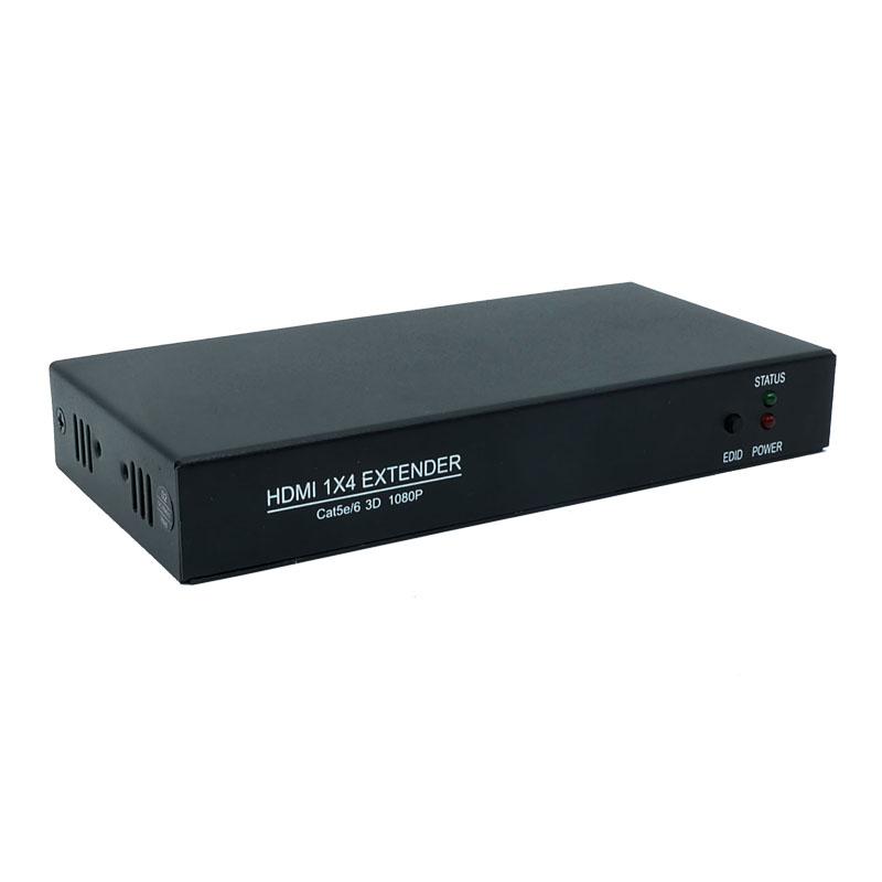 HDMI Distribution Extender is a high-definition video source is divided into four Road through a single cable to transmit high-definition video signals up to 60 meters, while supporting EDID learning capabilities, able to adapt to a variety of complex applications. The device has excellent image processing and transmission capabilities, the distribution of the signal more smooth and stable, is a reliable, high performance, efficient HDMI signal extension.