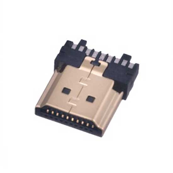 This is an HDMI male connector with a 19-pin gold-played terminal design. The gold-plated shell offers adequate protection to the connector. This featured HDMI connector matches assorted AV products nicely.