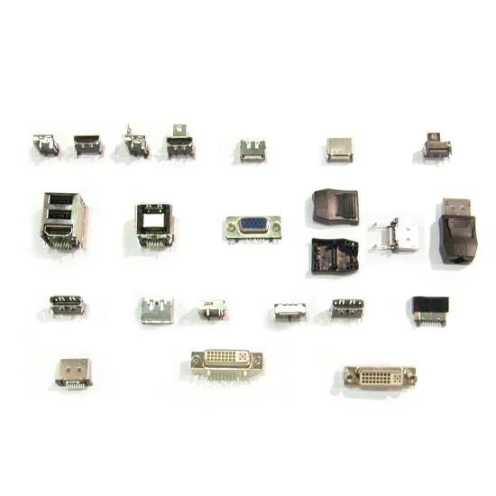 Presented are variuos jacks, plugs and connectors. They may be with flange or without flanges. There bodies are made of different materials, such as PBT, but all are UL94-0V rated.