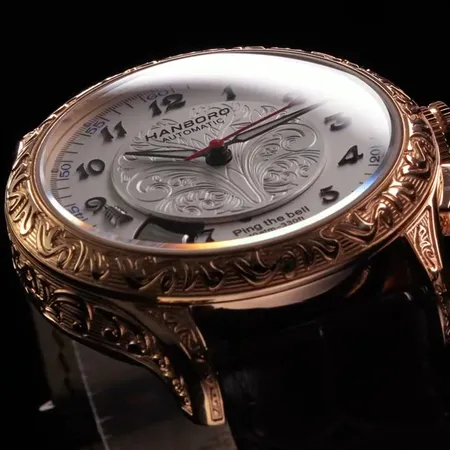 HNABORO hourly clock series carved craftsmanship crocodile leather strap men's mechanical watch