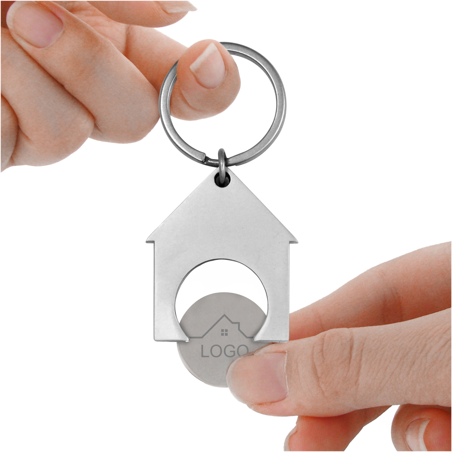 HOUSE SHAPE METAL TROLLEY COIN KEYCHAIN
