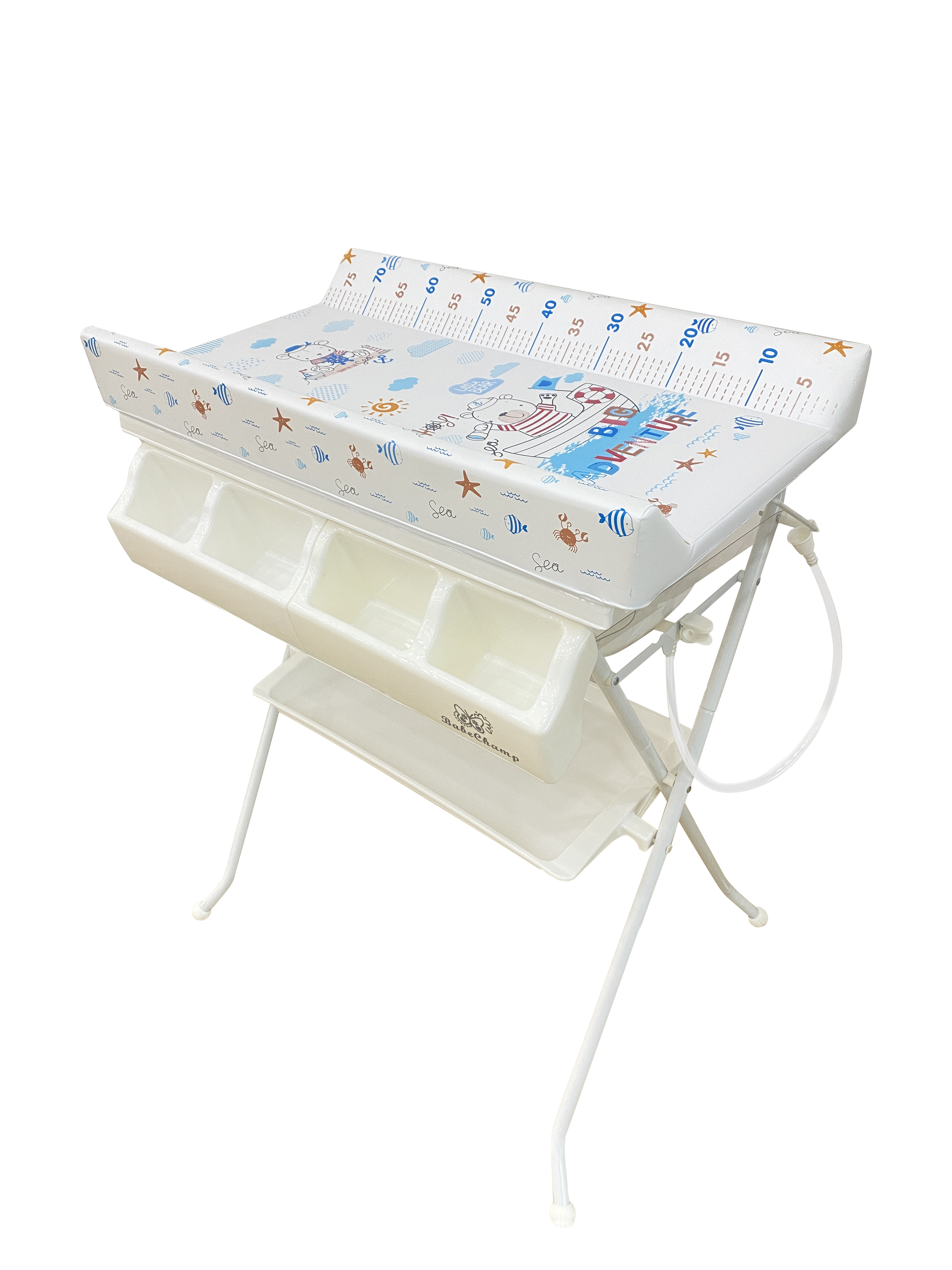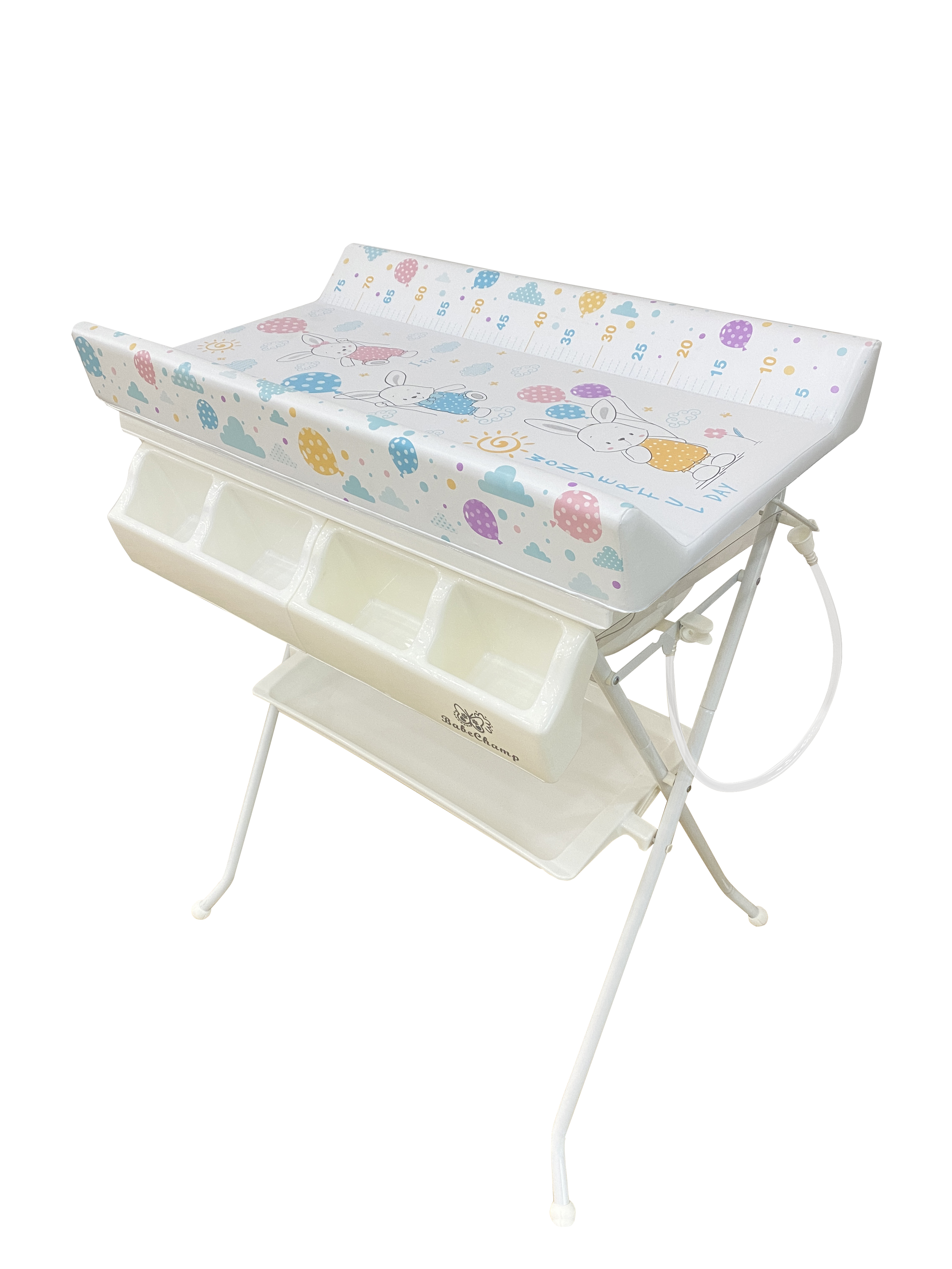The changing station is tested to comply with EN12221:2008+A1:2013 safety standard. It is easy to be assembled and convenient for storage as it is foldable. The top changer is made of PVC with foam inside which provide a comfortable and hygienic environment for baby to get dressed after the bath and change diapers. It is easy to clean.The bathtub is connected with a drainage pipe to discharge water into toilet bowl after use.