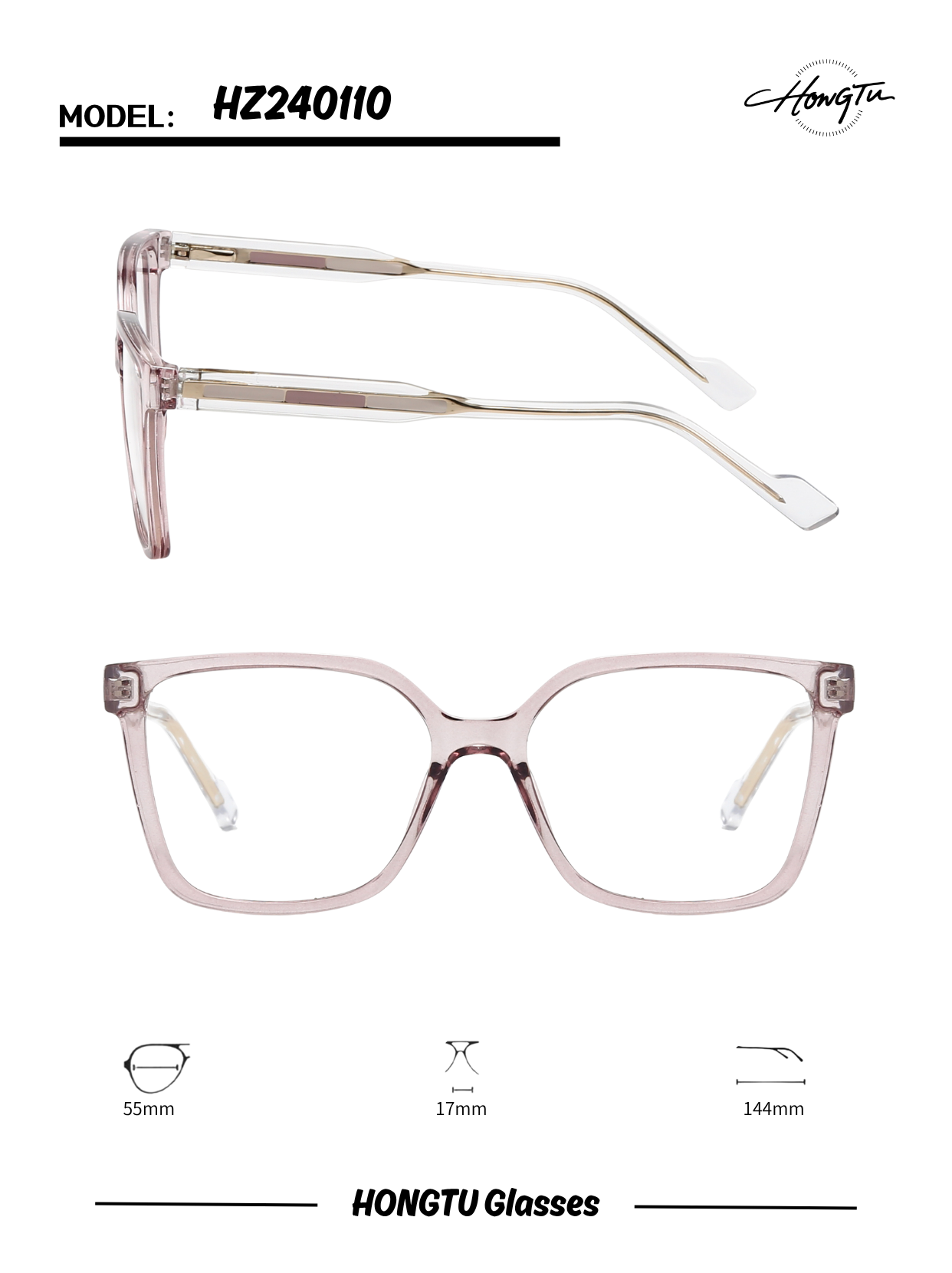 The HONGTU Glasses Model HZ240110 features a classic and timeless frame design, engineered for a comfortable and precise fit. With a frame width of 55mm, a bridge width of 17mm, and a temple length of 144mm, it ensures a secure and balanced feel for all-day wear. Combining understated aesthetics with reliable construction, this model is an ideal choice for those seeking a versatile and essential eyewear option that emphasizes comfort and durability.