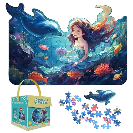 Embark on an underwater adventure with our "Daughter of the Sea" jigsaw puzzle. In this enchanting depiction, a beautiful girl gazes at a majestic fish while vibrant marine life and underwater flora surround her. This puzzle captures the magical beauty of the ocean, offering you a deep-sea exploration. It's not just a puzzle; it's a captivating journey beneath the waves. Dive into this alluring scene and let the sea's wonders come to life piece by piece.