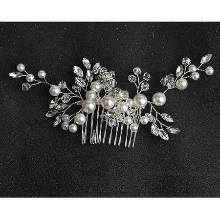 As shown is a high-fashion crystal imitation pearl style silver plated alloy parts lady hair comb.